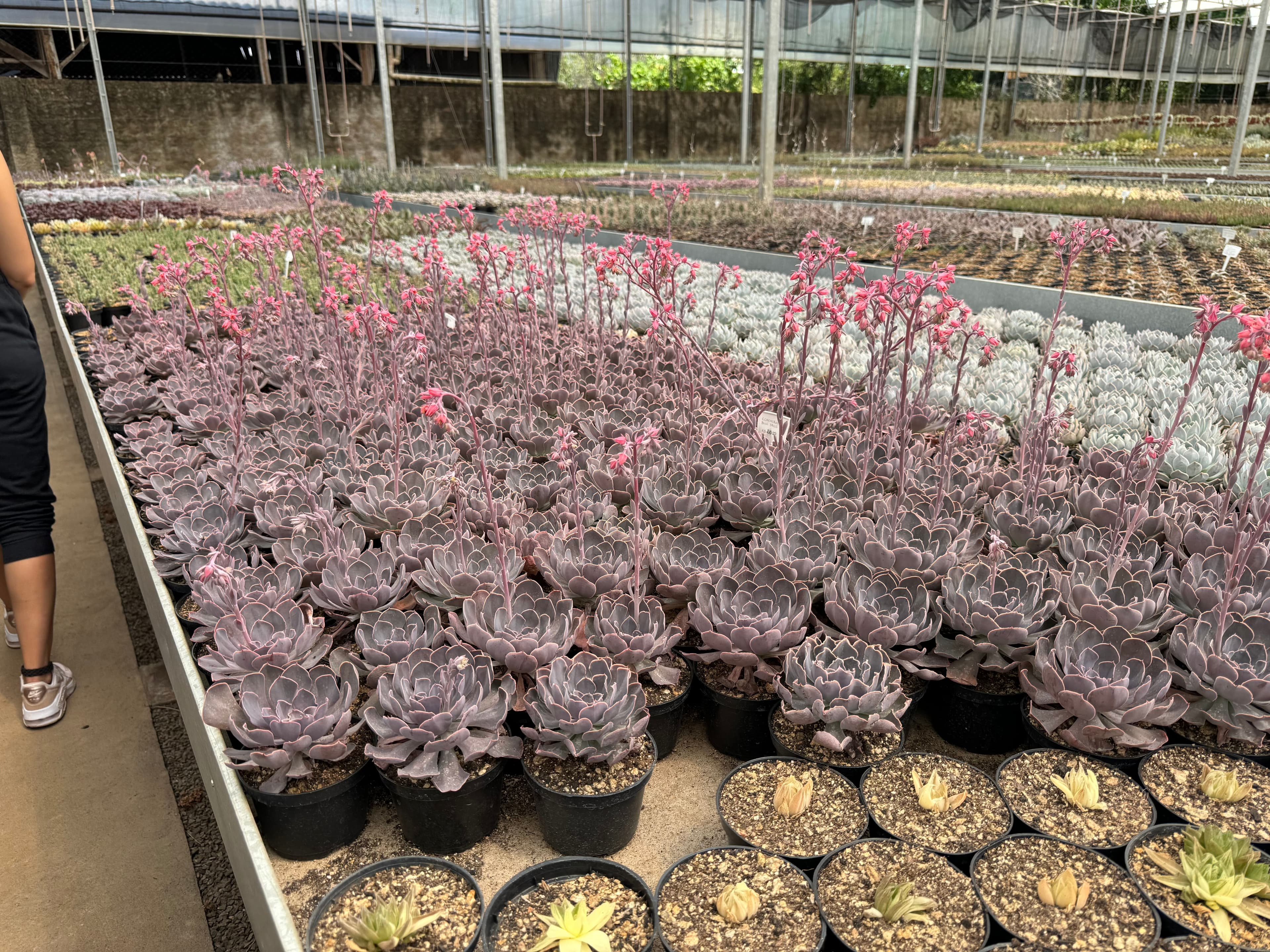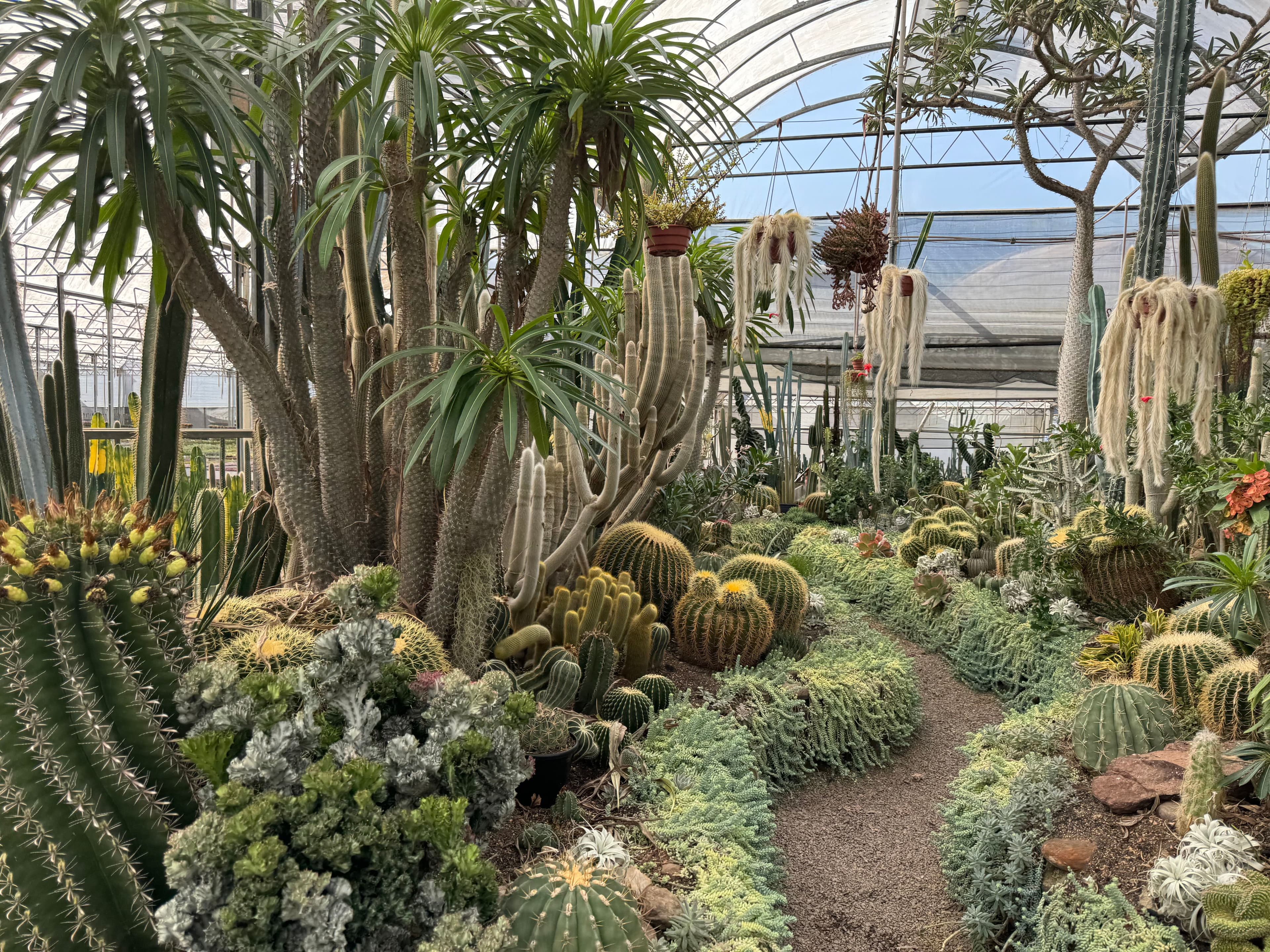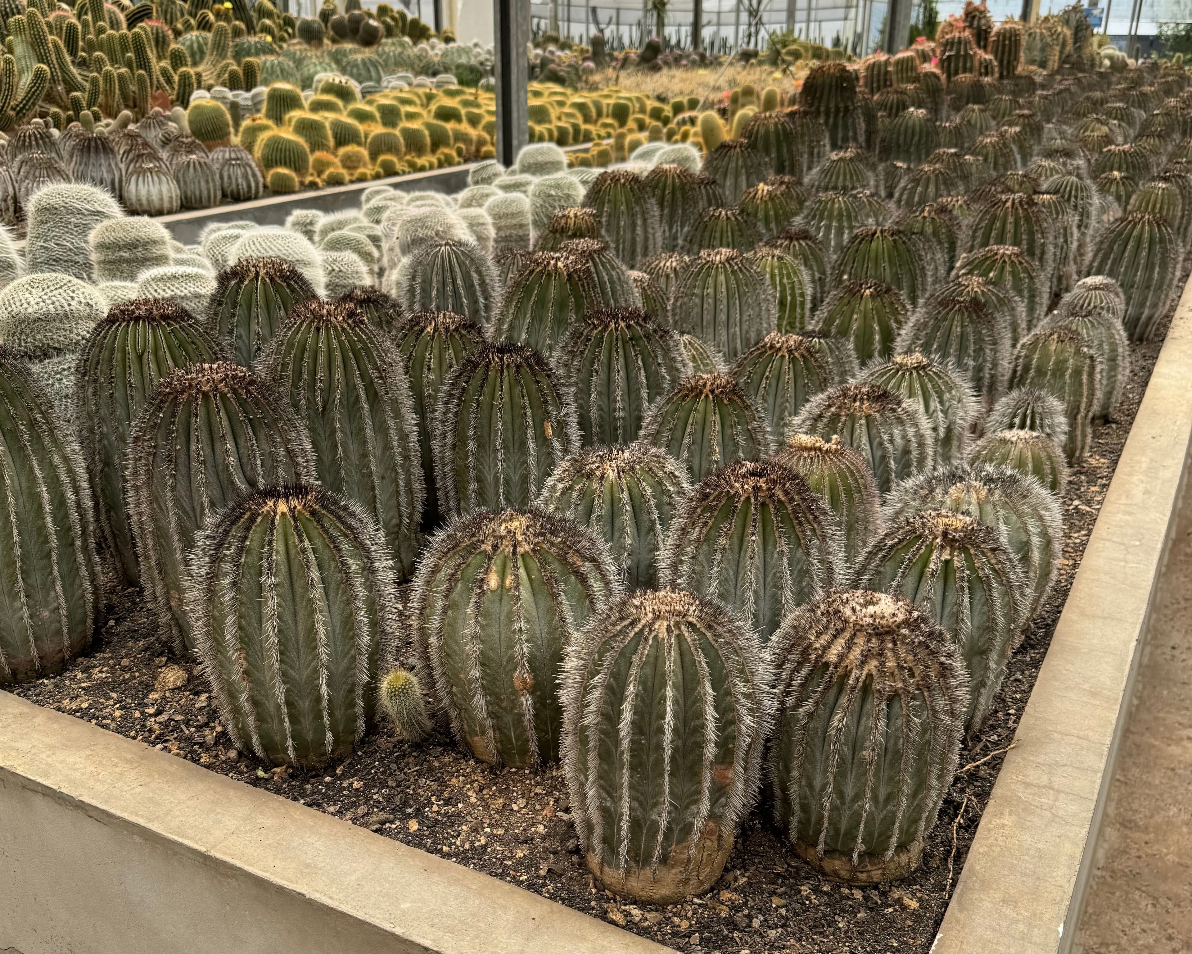Andar pelo Cactário Horst é uma experiência única. A estrutura é enorme, com mesas de cultivo que parecem não ter fim e uma variedade impressionante de espécies. Há desde os cactos mais comuns até uma área reservada com plantas para colecionadores — espécies moderadamente raras, algumas difíceis de encontrar em outros lugares.