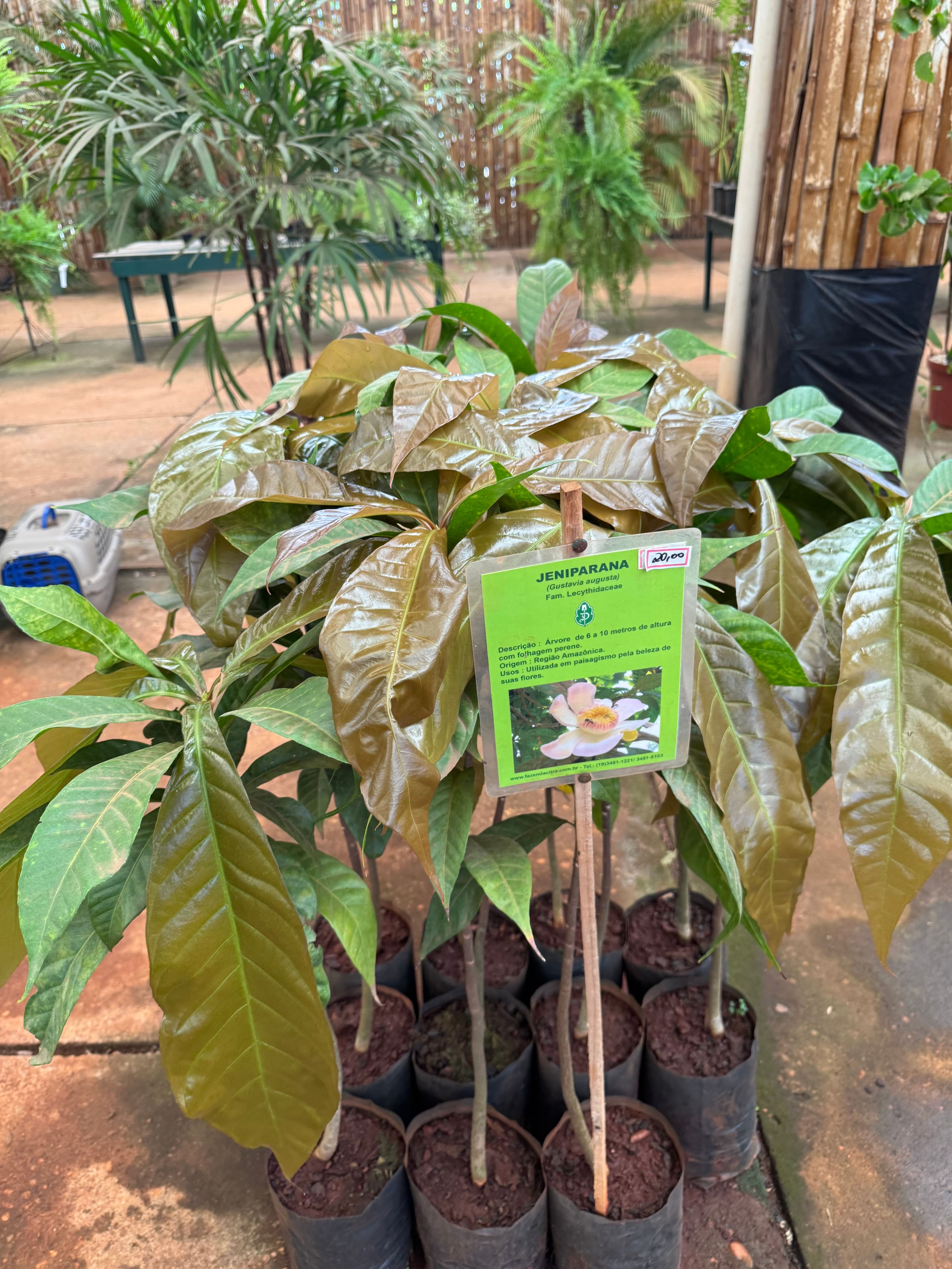 Nome comum: Jeniparana, uma planta elegante de folhas largas e simétricas.